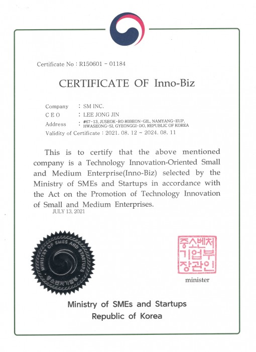 Technology Innovation Small and Medium Business (Inno-BIz) Confirmation