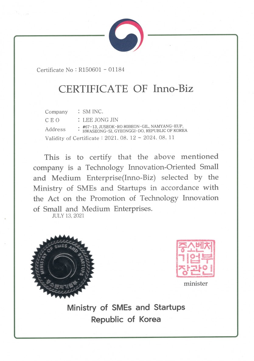 기업인증 Certificate of Inno-Biz