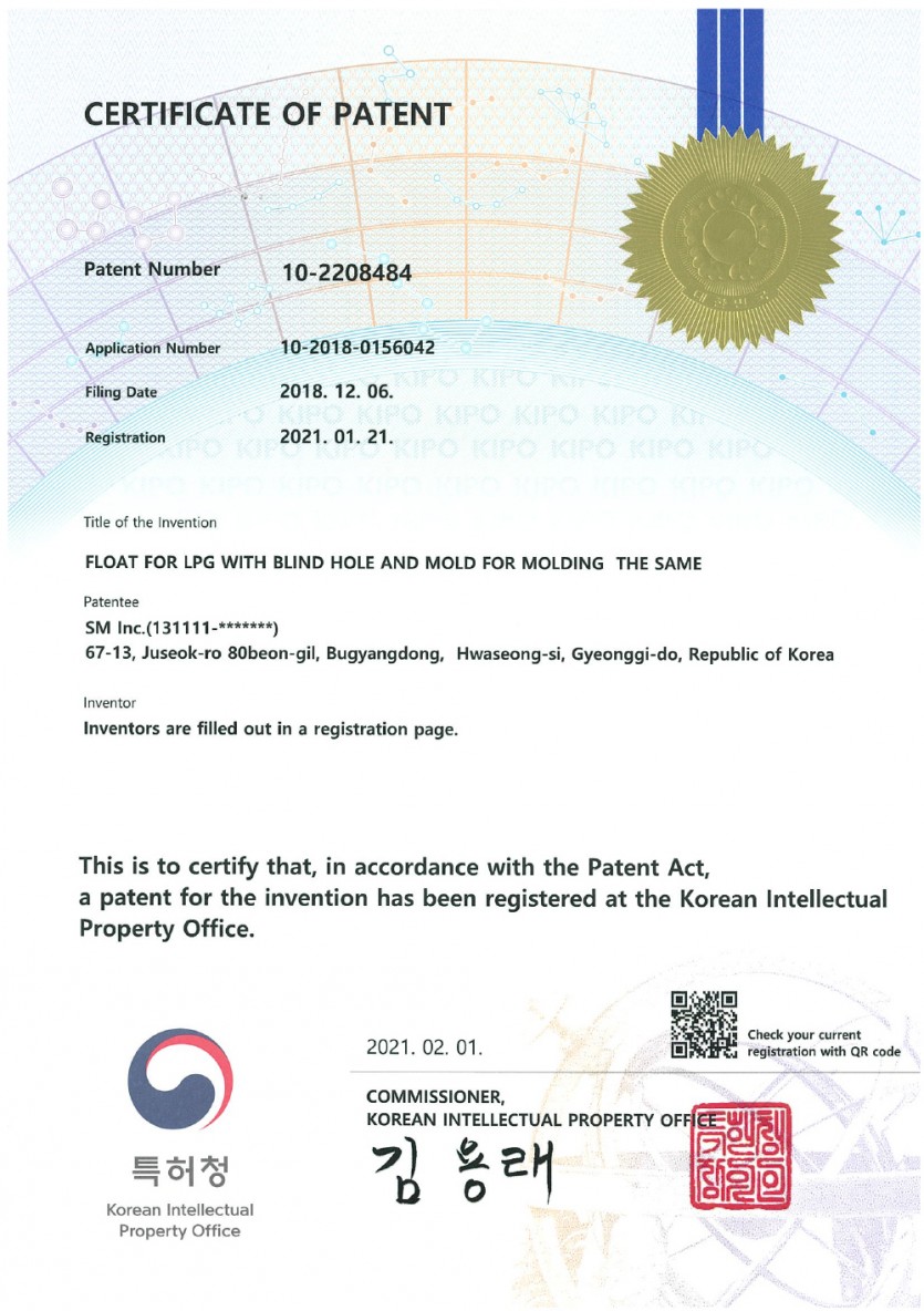 지적재산 Float for LPG with blind hole ans mold for molding the same